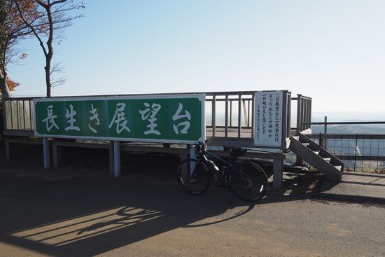 R14を渡り、秋元牧場脇の坂を登ると、長生き展望台が見えてきます。ちょっと寄り道しました。