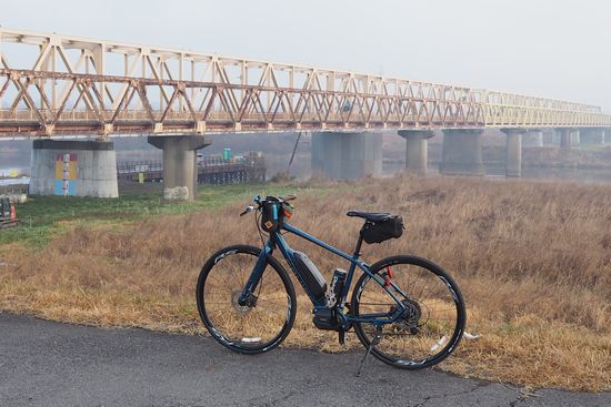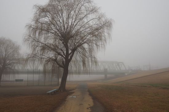快晴の印西を出て、栄橋を渡り、利根川左岸を進みます。すると、次第に深い霧の中へ入って