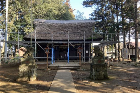 拝殿は茅葺の素敵な佇まいなのですが、あいにくと、周りに鉄の足場が組まれてしまっていました。