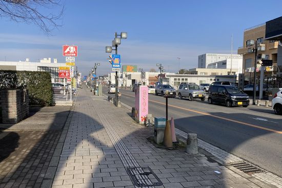 土手道から僅かで、県道142号に出ます。あとはひたすらに、この道を進みます。