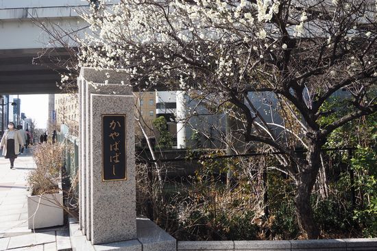 箱崎川を渡る、かやば橋のたもとに白梅が咲いていました。