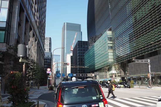 新大橋通りはやがて茅場町交差点に至ります。永代通りに右折して大手町を目指します。ビルの