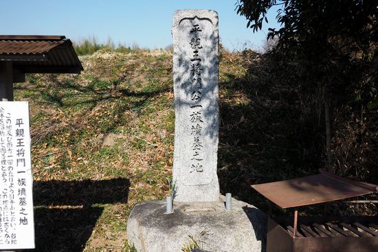 碑文は、平親王将門公一族墳墓之地、とあります。周囲には古墳群があり、その中の「六所塚古墳」