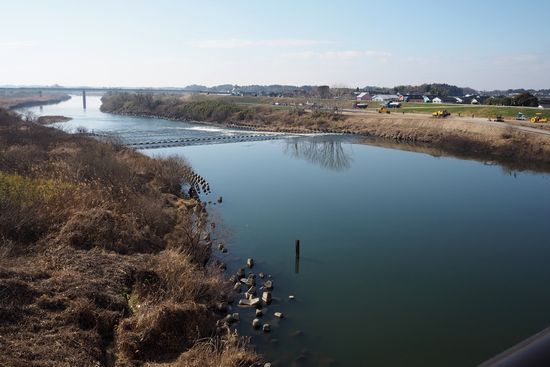石下橋から鬼怒川下流方向を撮影。遠くの橋は石下大橋です。