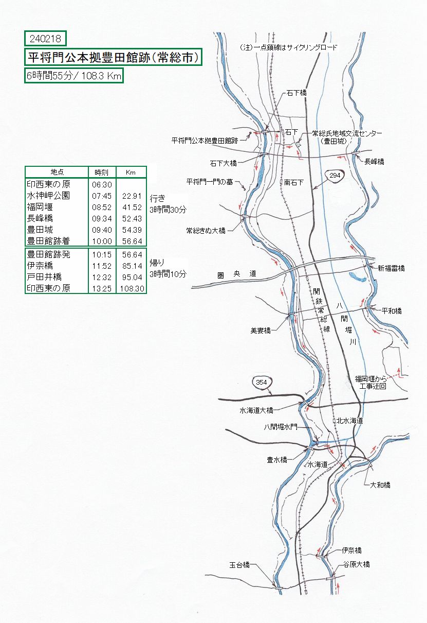 ために、茨城常総市向石下にある豊田館跡を見学して来ました。また、鬼怒川の、今まで走ったことのない部分を今回走ったのは収穫