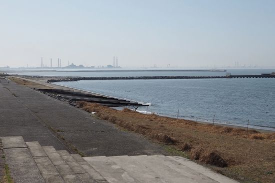 富津方向の工場群。