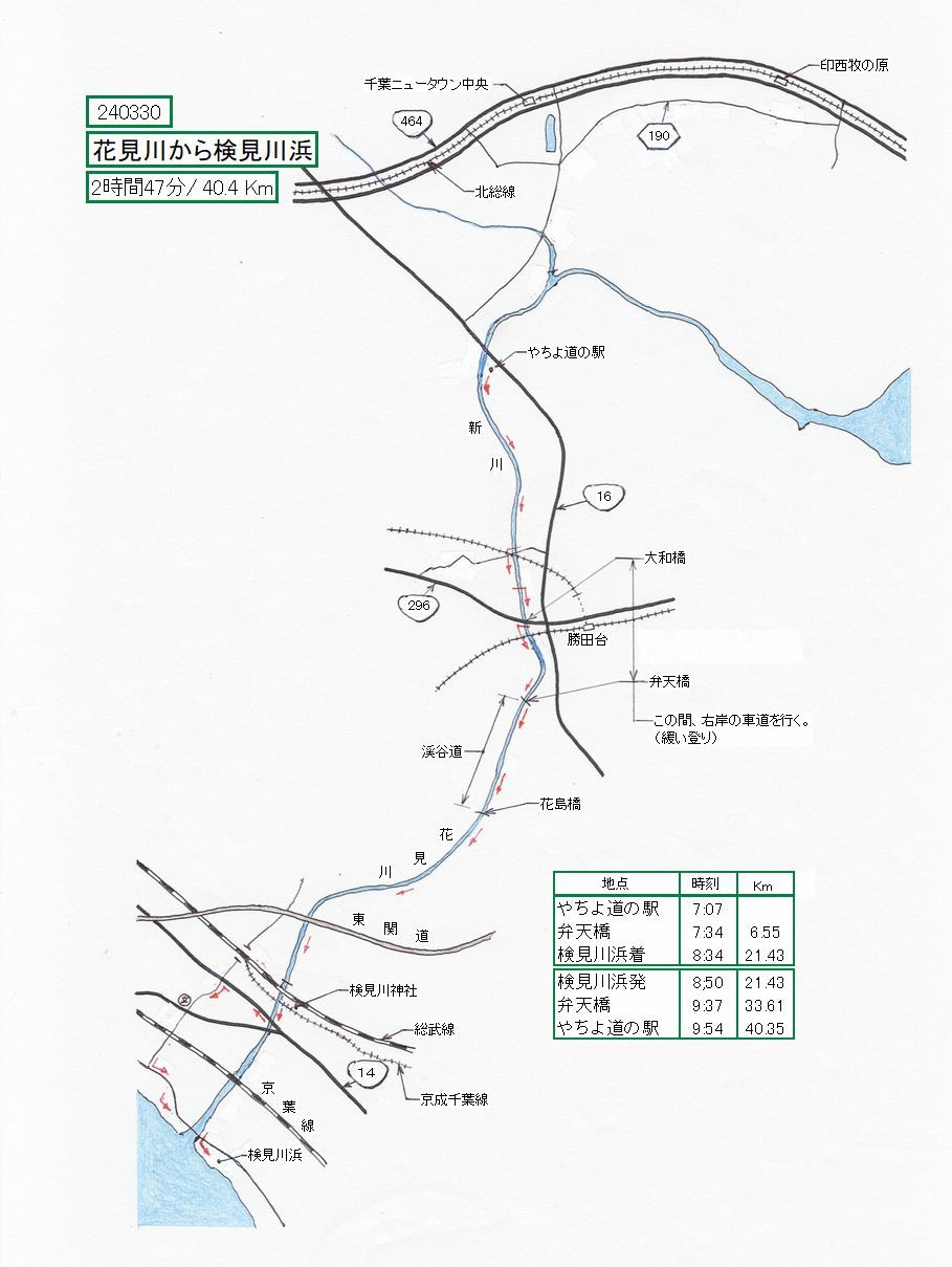 花見川から国道14号に出ます。14号に出るには、14号の下を潜り抜けた海側にアプローチが