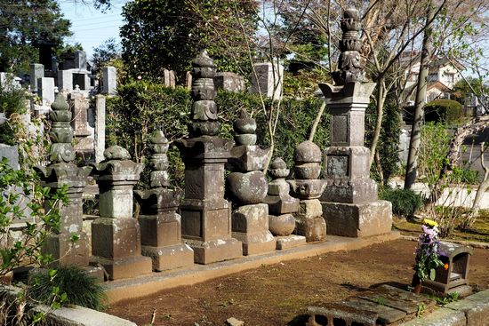 海禅寺境内の七騎塚に着きました。石塔が八基並んでいます。右端の一番大きな石塔が将門の