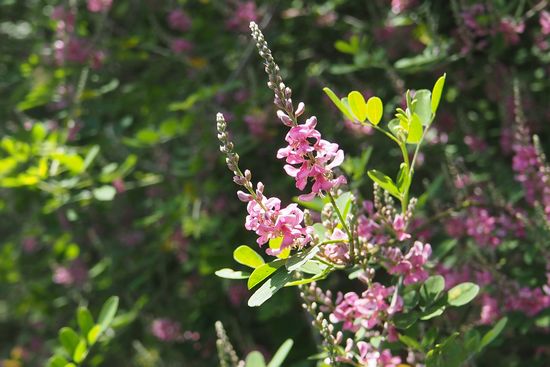 吉高交差点から坂を下りきったあたり、コマツナギ(駒繋ぎ)の群落が続きます。当初、私は、これら