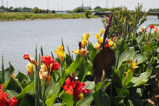 最後は口直しに綺麗な写真を。新利根川に咲くカンナの花。私にとって、強く夏を感じる花です。