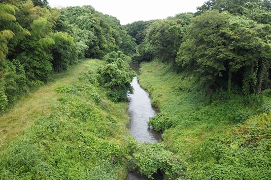菅生交差点から県道252号と名を変えた道は、印象的な川を渡ります。東仁連川です。
