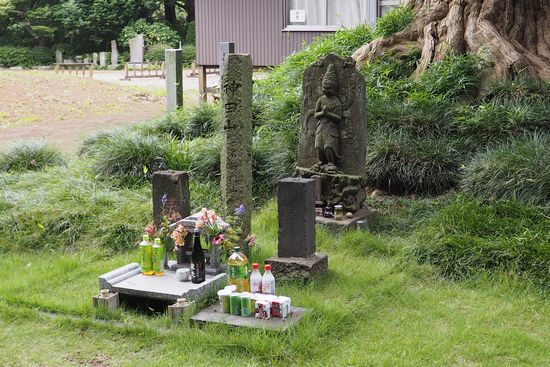 ここの社殿前の石灯篭が倒れたままになっていました。顔に矢を受けて絶命した将門公を連想