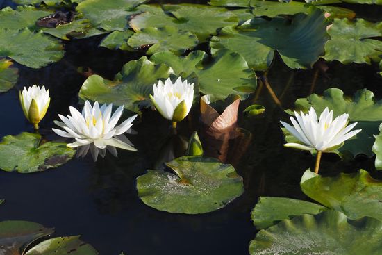 蓮以外には睡蓮があります。例年、赤と白の睡蓮のミックスなのですが、今年は何故か白ばかり