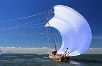 広げて網を引いている帆引き船を未だ見たことがありません。