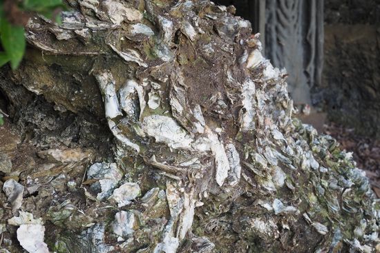 万年前、ここが古東京湾の渚でした。そこに自然に堆積した牡蠣殻がいま露出しています。縄文時代の