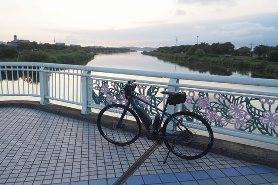総合公園を出て程なく、水郷橋で桜川を渡ります。橋の手摺の装飾は、川の名に因んだ桜模様