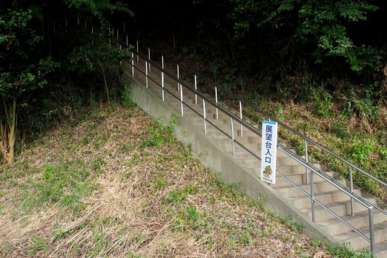 すると最初に、西参道という標識が現れますが、これは廃道っぽい道なので通過し、展望台入口と記