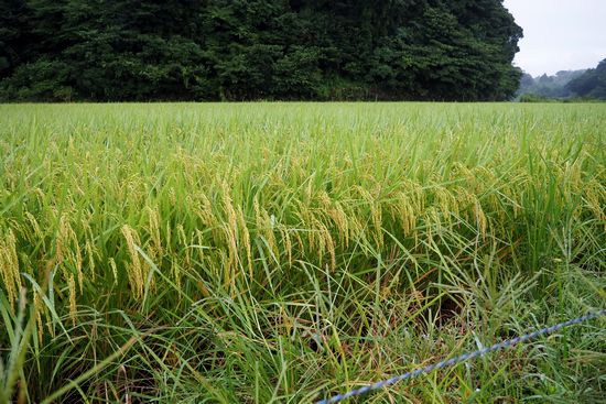 師戸川谷津道の水田。稲の穂がずいぶんと重くなり、頭を下げています。