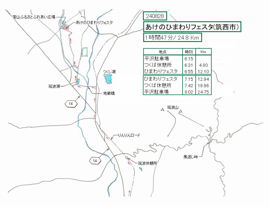 昨年も、あけのひまわりフェスタを訪れました。その時は霞ケ浦総合公園からの往復で、走行距離62.8Kmでした。今回は