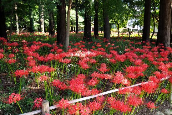 駐車場脇の林の中が、彼岸花で埋め尽くされていました。