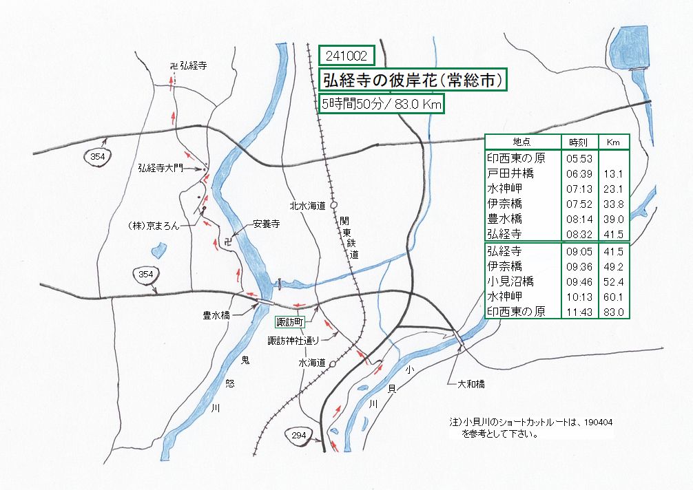 小貝川・戸田井橋から水神岬までショートカットします。秋の渇水期で、岬の周りに水がありません。