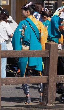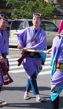 山車毎に曳き手の衣装が異なります。これは私の目にとまった粋な姐さん達です。山車を楽しみ、お囃子を