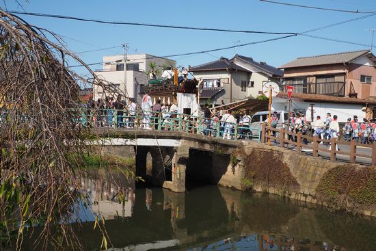 再び小野川沿いに戻ったら、先程眺めた源義経の山車が対岸におりました。