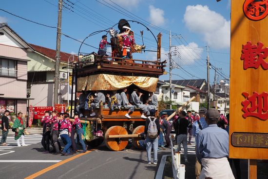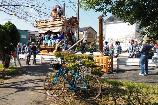 水戸鉾田佐原線という道路沿いの川岸公園というところで山車を見物しました。
