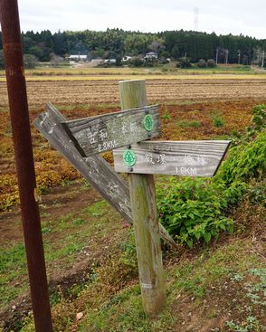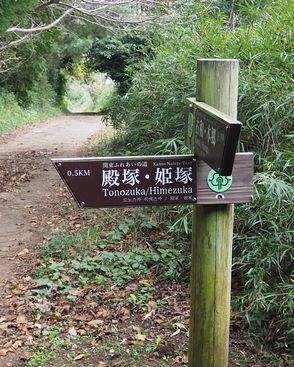 木戸川左岸を行くと、「殿塚。姫塚1Km」の道標は現れます。(左の写真) 枯葉の堆積した走り難い