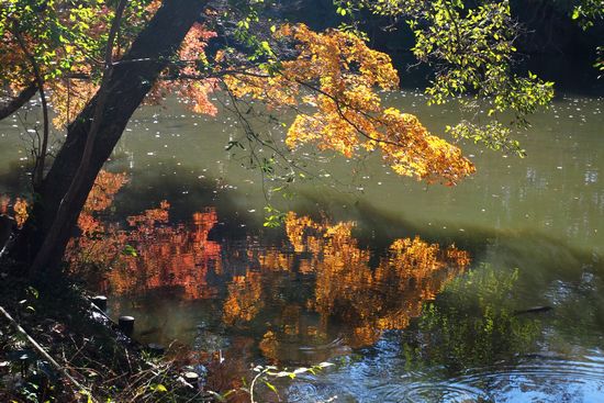 画面の下半分に見える紅葉は、水面に映った紅葉です。ちょっと遊んでみました。