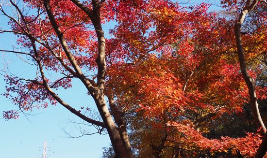 青空に紅葉が映えます。