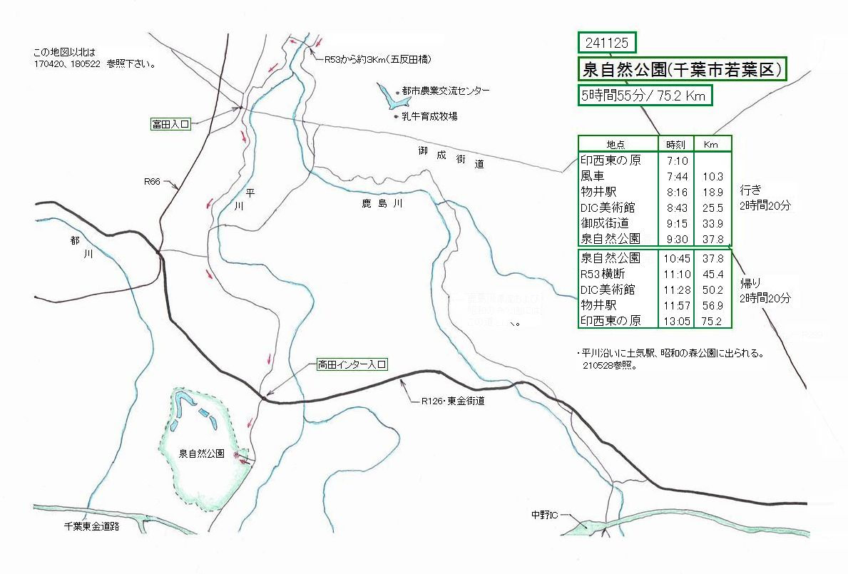 車道に移る場所は、皆さん、地図を見て研究して下さい。土気を目指す人は、そのまま谷津道を