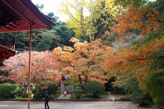 仁王門から境内の紅葉を見る。