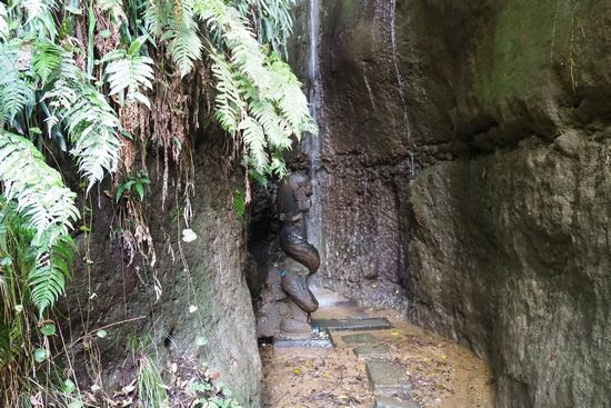 本堂の左側奥にある小滝。水を浴びているのは竜神様でしょうか。