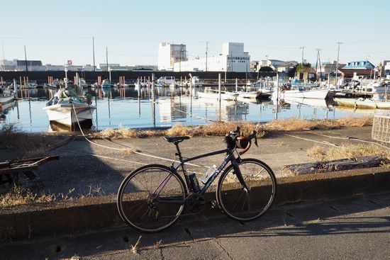行徳橋から旧江戸川沿いの自転車道を行きます。途中、何ヶ所も大型ボートの係留地があります。
