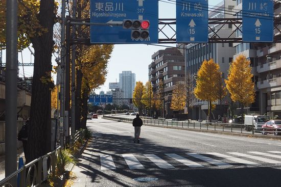 新橋駅前で第一京浜国道(国道15号)に入り、あとはそのまま道なりです。ここは品川駅近く。前方に