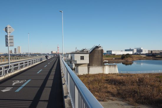 江戸川を行徳橋で渡ります。広い歩道橋が併設されています。