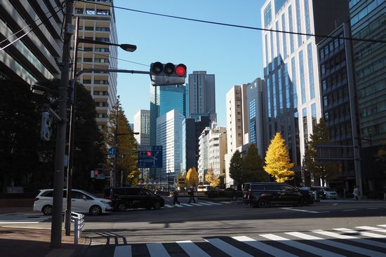 晴海通りから昭和通りに左折し、新橋駅方向に進んでいます。