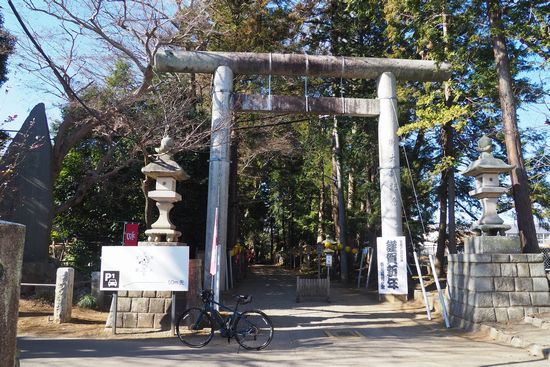 常陸国総社宮の表参道の大鳥居に着きました。ここから参道は、自転車を押し歩きで通ることは