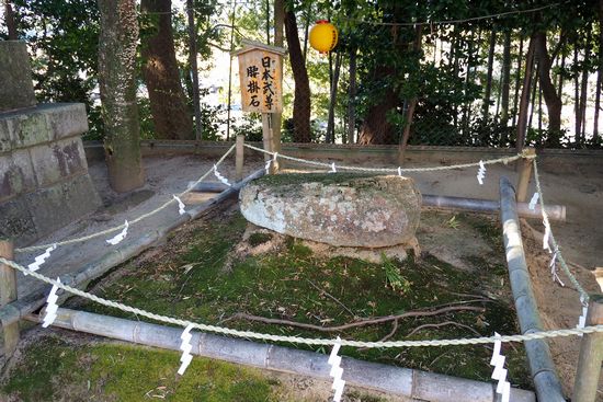 日本武尊(やまとたけるのみこと)が東征の途中で腰かけた、と伝えられる腰掛石。総社をここに