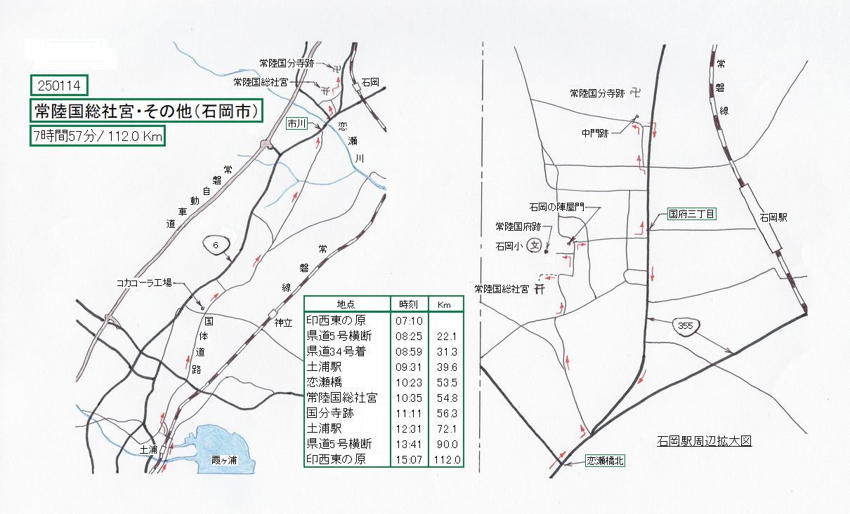 土浦駅から線路の西側に出て、国体道路に入ります。後は道なりで、恋瀬川近くで国道6号に合流