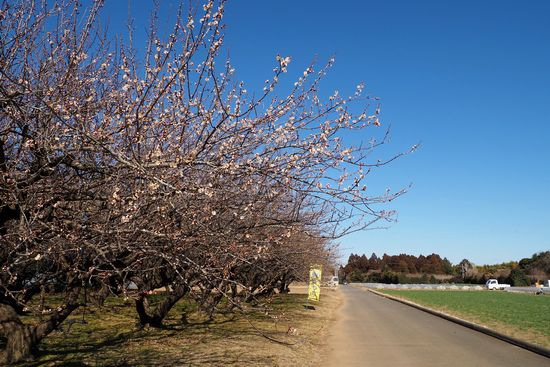九十九里平野に岬のように突き出した台地の上が梅林になっています。なので、天空の梅林などと呼ばれることもあるようです。岬の中間