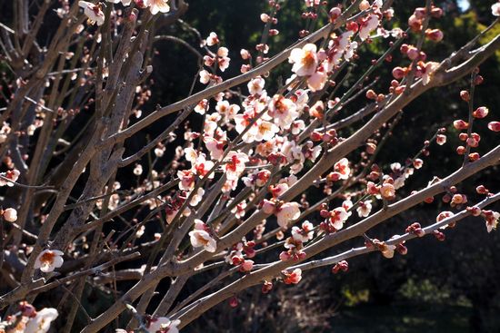 台地の上の梅林に着きました。今年は開花が遅れていて、まだ三分咲き。いい所だけ撮影して