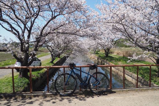 布瀬交差点から農免農道に入り、金山落に着きました。桜は満開でした。右岸を上流に向かい、