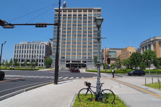 近くの栃木県庁に立ち寄って来ました。高層ビルの右側に、屋根付きの駐輪場が