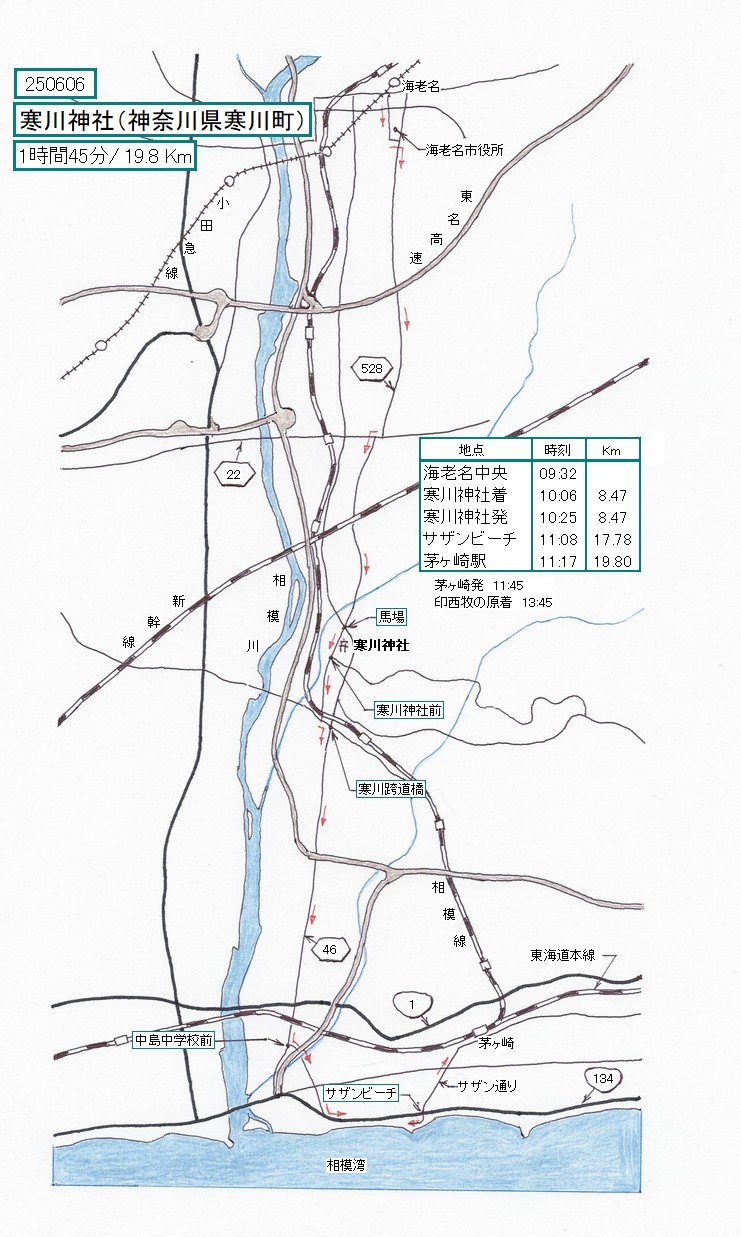 ここは馬場交差点です。もうすぐ左側が寒川神社となります。