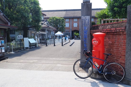 これは富岡製糸場の入口近くの旧韮塚製糸場。木造です。ここに駐輪できます。