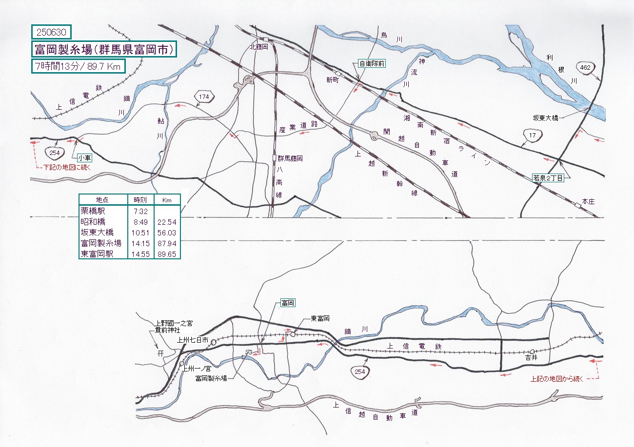 この日の富岡市の最高気温は36度越え。栗橋駅から出発し、利根川の坂東大橋までは、まずまず快調でした。ところが国道17号に入る頃から