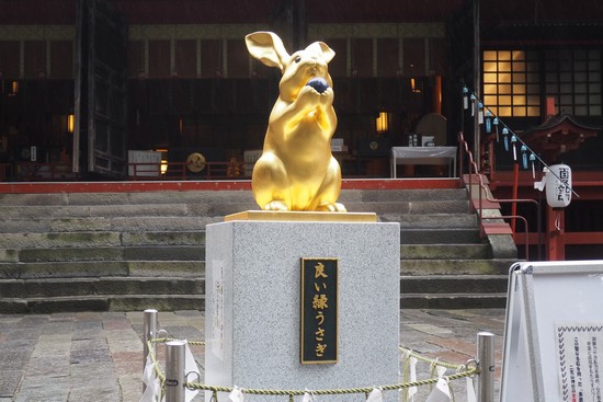 「良い縁うさぎ」という黄金のうさぎが飾られていました。