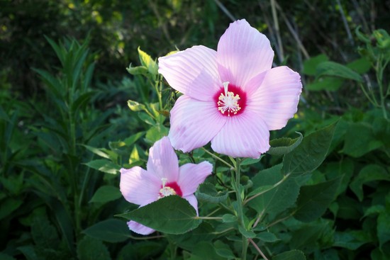 川辺に咲いていたアメリカフヨウ。